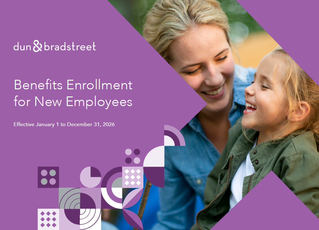 Welcome to Dun & Bradstreet! Our benefits plans offer a range of options for you to consider. Be sure to review the 2026 Benefits Enrollment for New Employees guide to learn about your benefits options, how to enroll and where to go to ask questions.